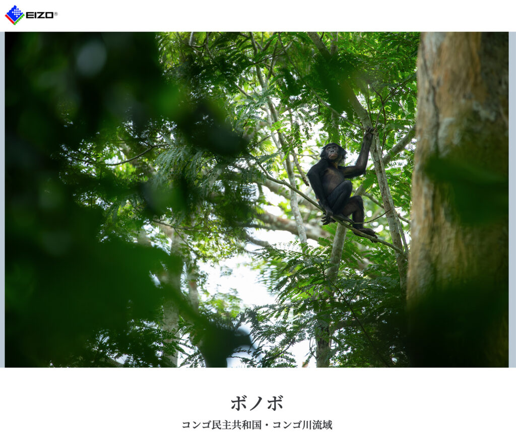 EIZOのWebで連載中「生き物たちの息吹」の第8回目が公開しました。今回はコンゴ民主共和国・コンゴ川流域「ボノボ」の物語。ぜひご覧になってください!